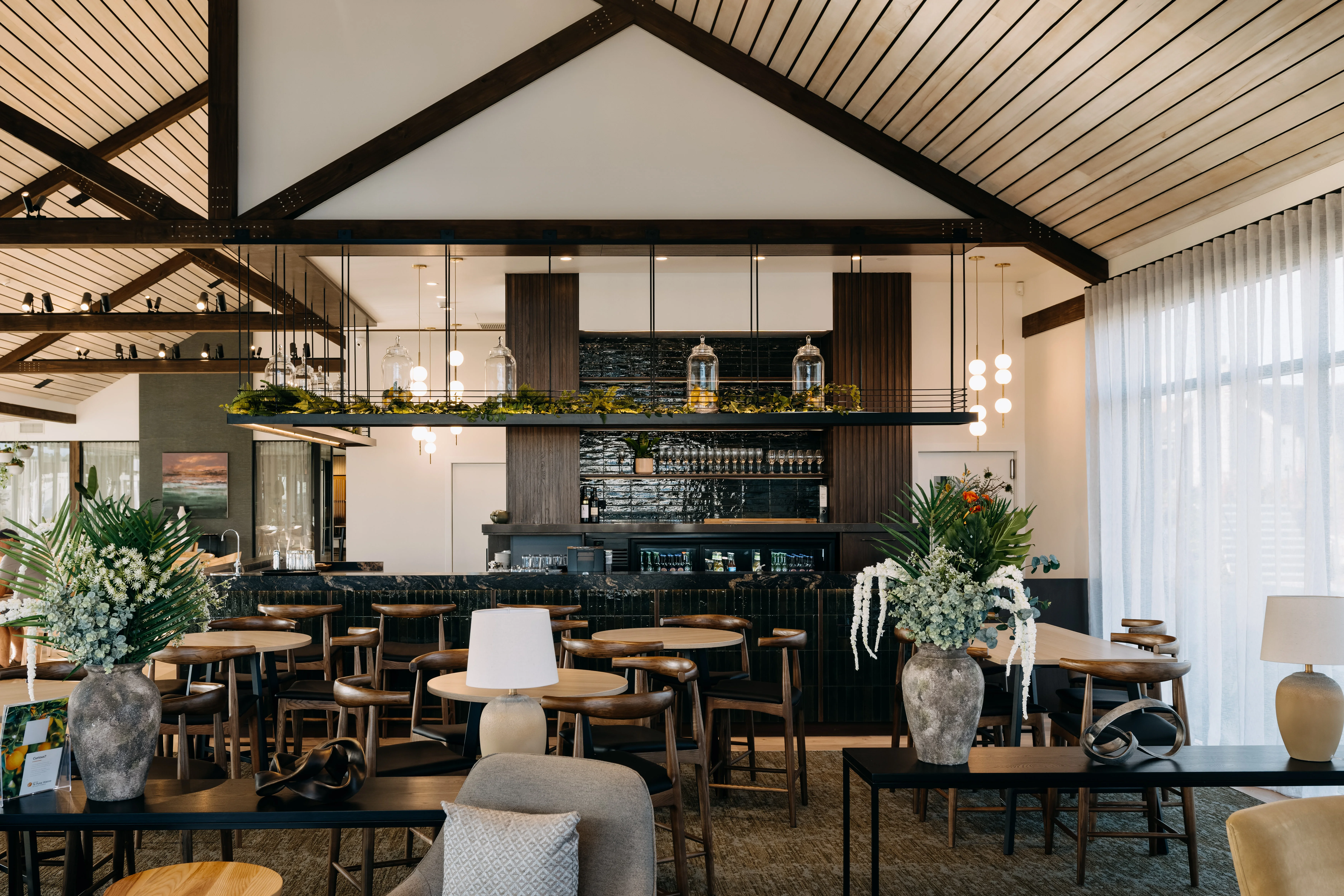 Collaborative Design & Coordination Grounding the space beneath the gantry are the beautiful bar pillar structures, which were the result of a design collaboration between John England and Hazel. Their combined vision ensured these elements acted as the perfect aesthetic anchor for the room.